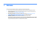 ● AC adapter ● Optional docking or expansion device ● Optional power adapter purchased as an accessory from HP Resolving a low battery level when no power source is available To resolve a low battery level when no power source is available, save your work and shut down the tablet. Conserving battery power ● Swipe from the right edge of the touch screen to display the charms, tap the Search icon, and then tap the search box. In the search box, type power, tap Settings, and then tap Power Options.