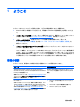 2 本指クリック 2 本指クリックを使用すると、画面上の項目のメニューを選択できます。 注記:2 本指クリックを使用すると、マウスを右クリックしたときと同じ操作が実行されます。 ● 2 本の指をタッチパッド ゾーンに置いて押し続けると、選択したオブジェクトのオプション メ ニューが表示されます。 回転(一部のモデルのみ) 回転を使用すると、写真などの項目を回転できます。 ● 回転させるオブジェクトに左手の人差し指を固定します。左手の人差し指の周りで、右手の人差 し指を 12 時から 3 時の位置へと弧を描きながら動かします。逆方向へと回転させるには、人差 し指を 3 時から 12 時の方向に動かします。 注記:回転は、オブジェクトまたは画像を操作できる特定のアプリケーションを対象としておりま す。回転は一部のアプリケーションでは機能しない可能性があります。 20 第 4 章 タッチ ジェスチャを使用した操作