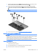 4. Scoateţi acumulatorul şi capacul docului pentru acumulator (consultaţi Scoaterea unui