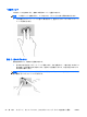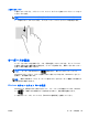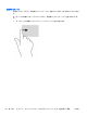 タッチパッド ゾーンで 2 本の指を互いに離した状態にして置き、その 2 本の指の間隔を狭める