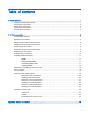 Table of contents 1 Product features ................................................................................................................................................ 1 Standard configuration features ........................................................................................................... 1 Front panel components ....................................................................................................................... 2 Rear panel components ...................