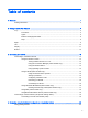 Table of contents 1 Welcome ........................................................................................................................................................... 1 Finding information ............................................................................................................................... 2 2 Getting to know your computer ......................................................................................................................... 4 Top ................