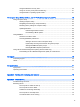 Using the Windows recovery tools ..................................................................................... 60 Using f11 recovery tools (select models only) ................................................................... 61 Using Windows 7 operating system media ........................................................................ 61 12 Computer Setup (BIOS), MultiBoot, and HP PC Hardware Diagnostics (UEFI) ........................................... 63 Using Computer Setup ...............