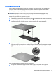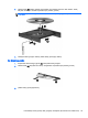 1. Įkiškite sąvaržėlės galą (1) į atlaisvinimo prieigą ant priekinio diskų įrenginio dangtelio.
