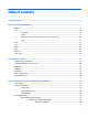 Table of contents 1 Product description ....................................................................................................................................... 1 2 External component identification .................................................................................................................. 7 Display .................................................................................................................................................................... 7 Top ..
