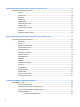 10 HP PC Hardware Diagnostics (UEFI) ............................................................................................................ 112 Downloading HP PC Hardware Diagnostics (UEFI) to a USB device .................................................................. 113 11 Backup and recovery in Windows 7 ............................................................................................................ 114 Creating recovery media and backups ............................................