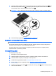 1. Umetnite čvrsti disk u ležište za čvrsti disk pod uglom (1) i spustite čvrsti disk u ležište (2).