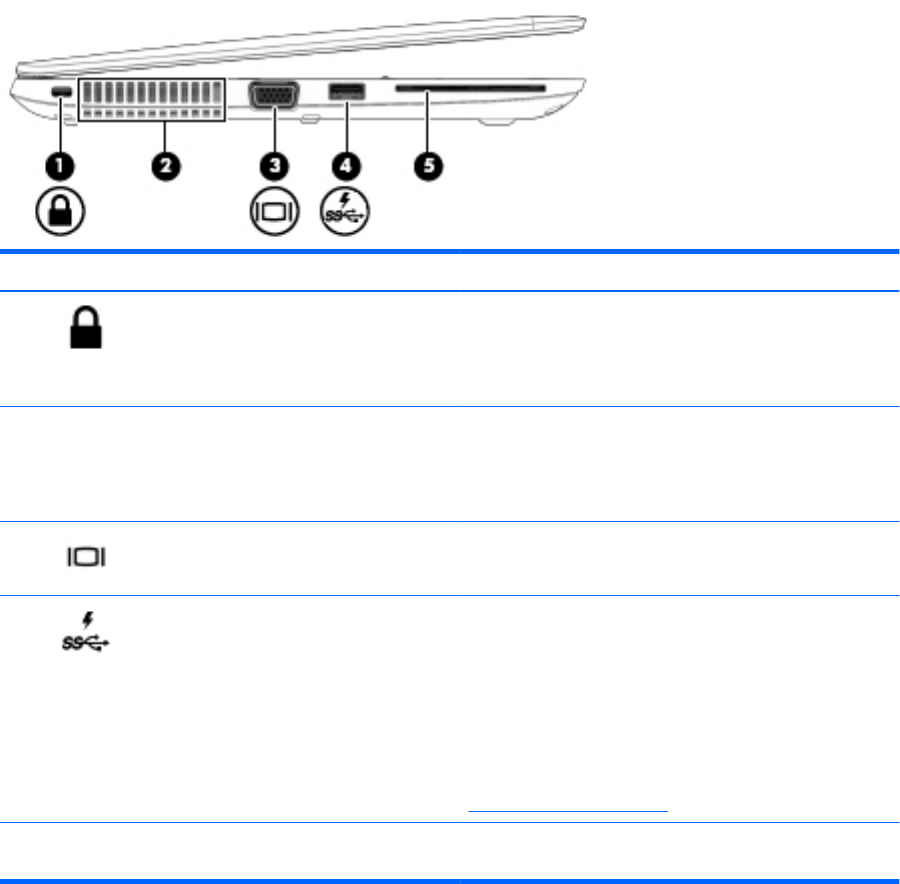 (4) USB 3.0 charging (powered) port Connects an optional USB device, such as a keyboard, mouse,