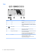 (6) num lk-tast Slår den innebygde numeriske tastgruppen på og av når du