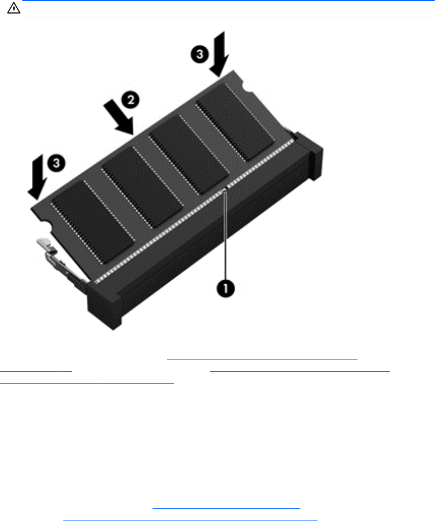 в. Внимателно натиснете модула с памет надолу (3), като натискате левия и десния му