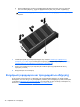 5. Ξεσφίξτε τις 4 βίδες στη θύρα της μονάδας σκληρού δίσκου (1). Τραβήξτε την υφασμάτινη