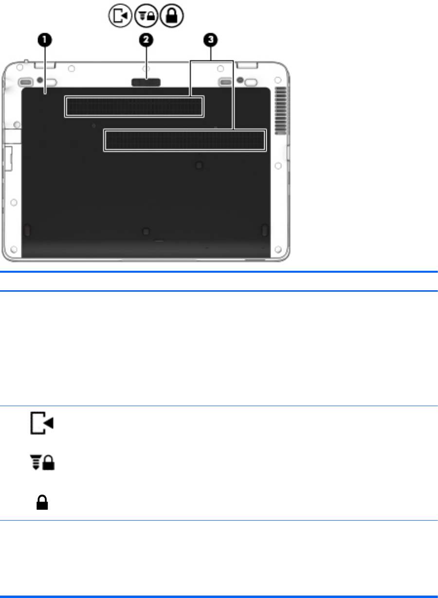 아래쪽 덮개 분리 잠금 장치 컴퓨터에서 아래쪽 덮개를 분리합니다. 아래쪽
