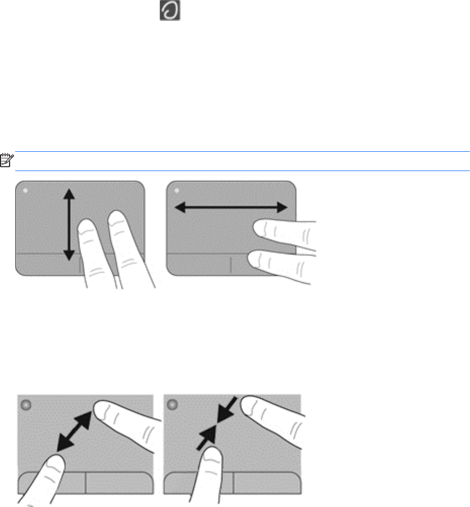 스크롤은 페이지나 이미지를 위아래로 또는 옆으로 이동할 때 유용합니다. 스크롤하려면 터치패드에