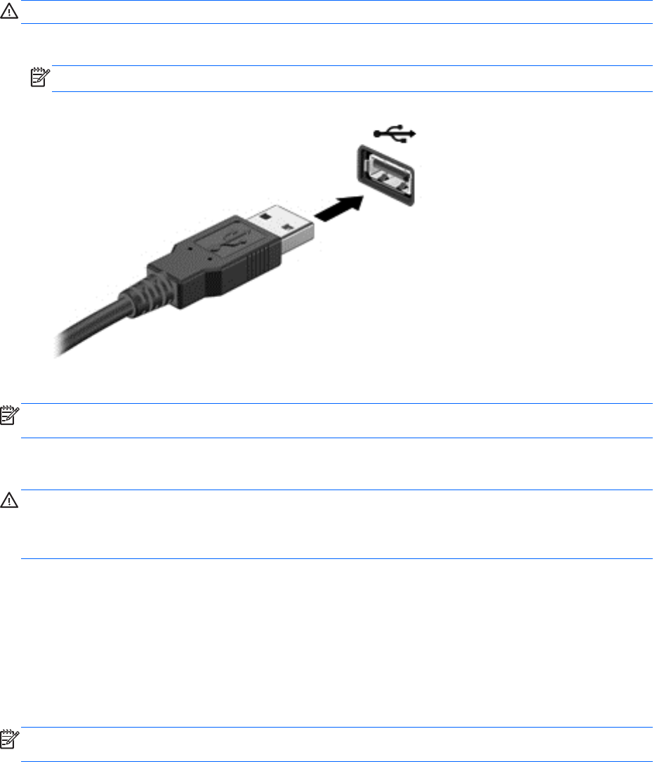 주의: USB 커넥터의 손상을 방지하려면 장치에 연결할 때 무리하게 힘을 주지 마십시오.