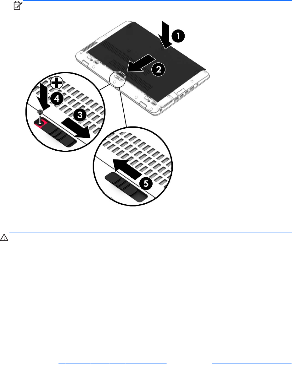 다. 분리 래치를 왼쪽으로 밀어 아래쪽 덮개를 고정합니다(5).