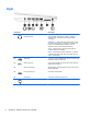 External VGA monitor port Connects an external VGA monitor or projector.