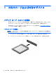 注意: メディア カード コネクタの損傷を防ぐため、メディア カードを挿入するときは無理な力