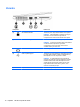 Lysdiode for vekselstrøm/batteri ● Gul: Computeren er tilsluttet ekstern strøm, og