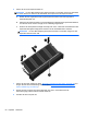 2. Schieben Sie die Service-Abdeckung in Richtung der Vorderseite des Computers (4), und heben