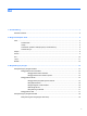 Indeks A adaptor AC, menguji 42 alat penunjuk, mengeset preferensi 19 antena nirkabel, mengenali 11 antena WLAN, mengenali 11 antena WWAN, mengenali 11 B baterai membuang 41 menampilkan sisa daya baterai 37 mengganti 41 menghemat daya 40 mengosongkan 37 menyimpan 40 sediaan daya baterai yang rendah 38 bepergian dengan membawa komputer 40, 86, 89 BIOS memastikan versi 80 memperbarui 80 mengunduh pembaruan 80 C cantelan, pelepas penutup akses 13 cantelan pelepas penutup akses 13 Computer Setup Katasandi Driv
