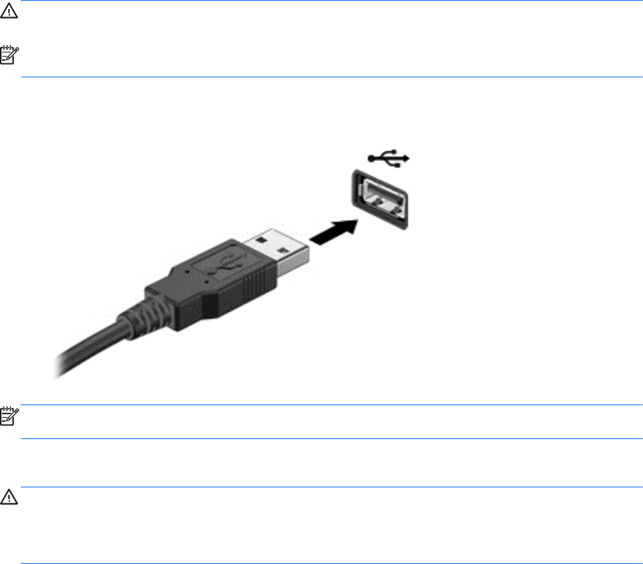 VOORZICHTIG: gebruik niet te veel kracht bij het aansluiten van een USB-apparaat, om