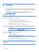 5. Windows 복구 환경을 선택합니다. 6. 화면의 지시 사항을 따릅니다. 참고: 시스템에서 복구 파티션을 찾지 못하는 경우, 복구 미디어를 삽입하라는 메시지가 표시됩니다. 디스크나 USB 플래시 드라이브를 삽입하고 예를 선택한 후 다음을 클릭하여 컴퓨터를 다시 시작한 다 음 복구 디스크나 USB 플래시 드라이브에서 HP Recovery Manager 를 실행합니다. 여러 디스크를 사 용하는 경우, 메시지가 표시되면 다음 시스템 복구 디스크를 삽입합니다. 7. 복구가 완료되면 컴퓨터를 끄고 모든 주변 장치를 다시 연결한 후 컴퓨터를 다시 켭니다. 시스템 시작 시 시스템 복구 주의: 시스템 복구는 생성 또는 설치된 모든 데이터 및 프로그램을 삭제합니다. 중요한 데이터는 이동식 디 스크나 USB 플래시 드라이브에 백업합니다. 컴퓨터는 작동 중이지만 Windows 가 응답하지 않는 경우에는 다음 단계를 따라 시스템 복구를 수행합니다. 1. 컴퓨터를 끕니다.