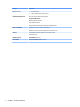 Left side Item Component Description (1) Security cable slot Attaches an optional security cable to the computer. NOTE: The security cable is designed to act as a deterrent, but it may not prevent the computer from being mishandled or stolen. (2) Power connector Connects an AC adapter. (3) AC adapter light ● White: The AC adapter is connected and the battery is charged. ● Amber: The AC adapter is connected and the battery is charging. ● Off: The computer is using battery power.