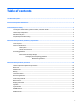 Table of contents 1 Product description ....................................................................................................................................... 1 2 External component identification ................................................................................................................. 3 3 Illustrated parts catalog ................................................................................................................................
