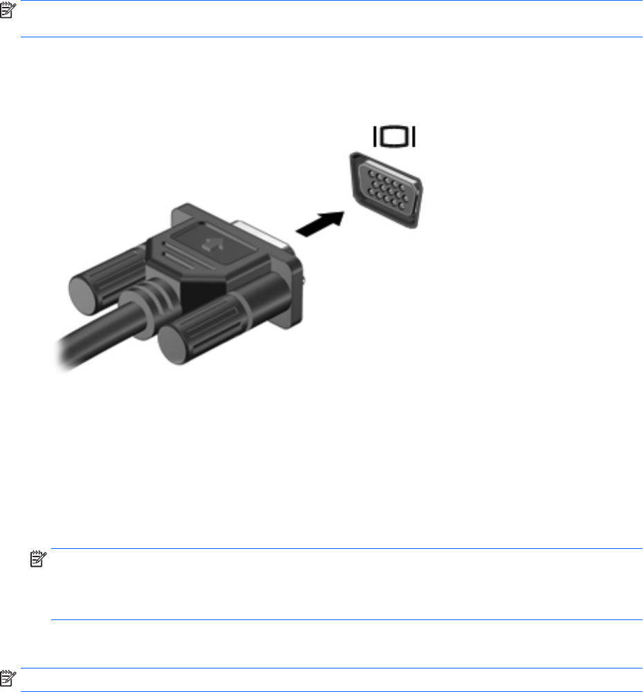 1. Pievienojiet monitora vai projektora VGA kabeli datora VGA portam, kā redzams attēlā.