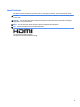 ● Connect an HDMI cable to the HDMI port on the rear of the monitor and the other end to the source device. ● Connect an MHL cable to the HDMI (MHL) port on the rear of the monitor and to the micro USB port on an MHL-enabled source device, such as a smart phone or tablet, to stream content from the mobile device to your monitor screen. NOTE: The MHL video is limited to the mobile device output resolution. NOTE: The MHL connector also charges your MHL mobile device while connected and streaming.