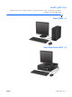 - التغيير من التكوين األفقي إلى التكوين العمودي يمكن استخدام كمبيوتر  Small Form Factorفي اتجاه عمودي مزود بحامل عمودي اختياري يمكن شراؤه من شركة .HP .١ أزل/حرر أية أجھزة حماية تمنع فتح الكمبيوتر. .٢ أزل جميع الوسائط القابلة لإلخراج مثل األقراص المضغوطة أو محركات أقراص  flashمن نوعية  USBمن الكمبيوتر. .٣ أوقف تشغيل الكمبيوتر بطريقة صحيحة من خالل نظام التشغيل ،ثم أوقف تشغيل أية أجھزة خارجية. .٤ افصل سلك الطاقة عن المأخذ الكھربائي ،وافصل أية أجھزة خارجية.