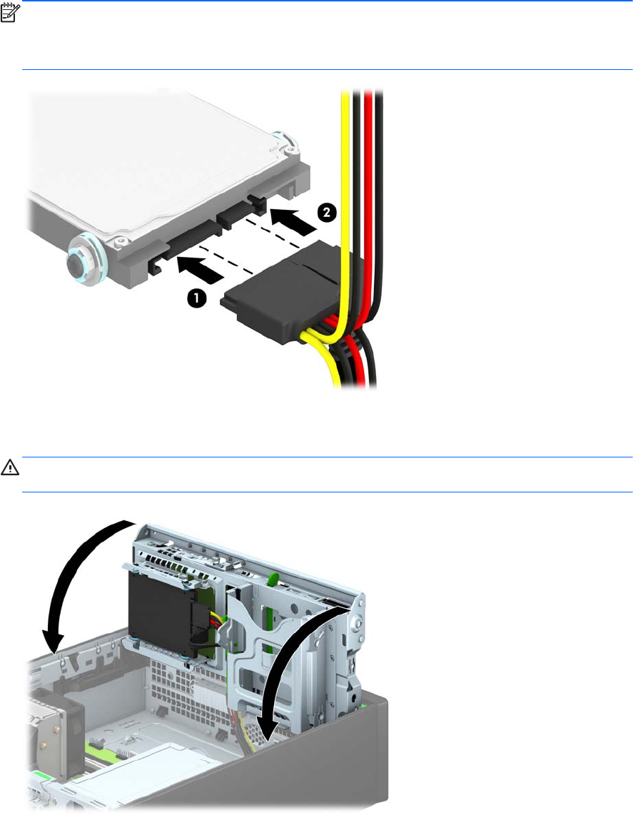 10. Подключите кабель питания (1) и кабель данных (2) к задней части жесткого диска.
