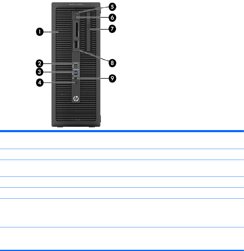 - Компоненты передней панели модели с уменьшенным корпусом Small Form Factor (SFF)