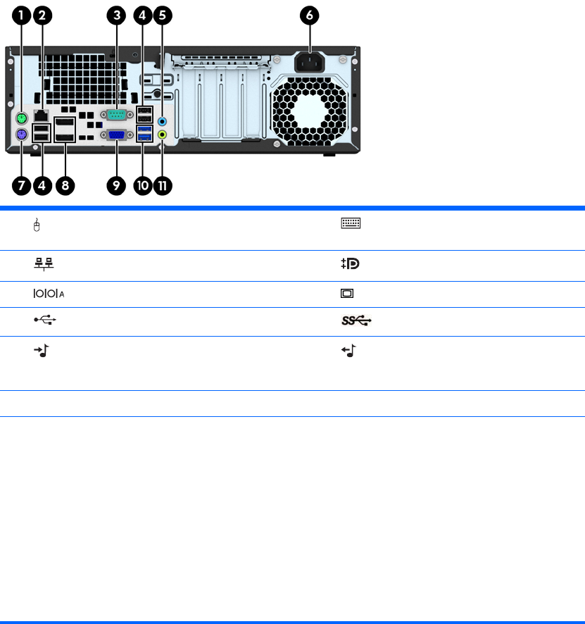 - Компоненты задней панели модели с уменьшенным корпусом Small Form Factor (SFF)