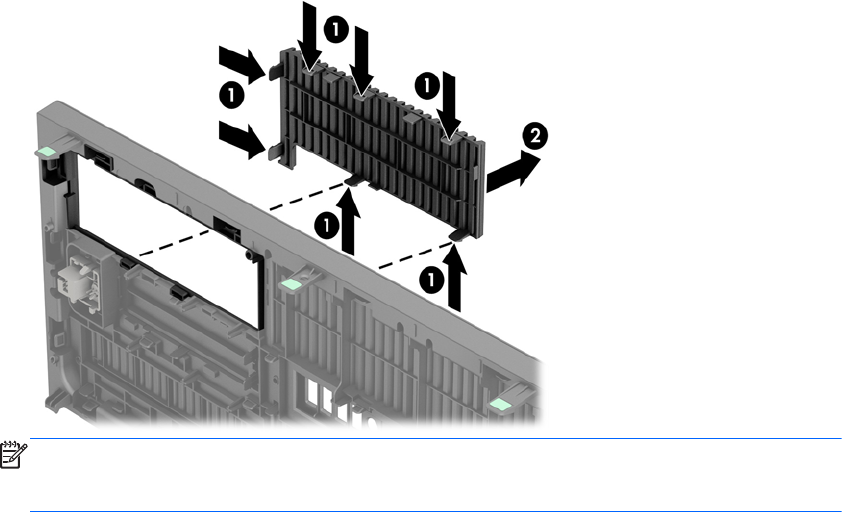 Нажмите на защелки, удерживающие 5,25-дюймовую декоративную заглушку, по