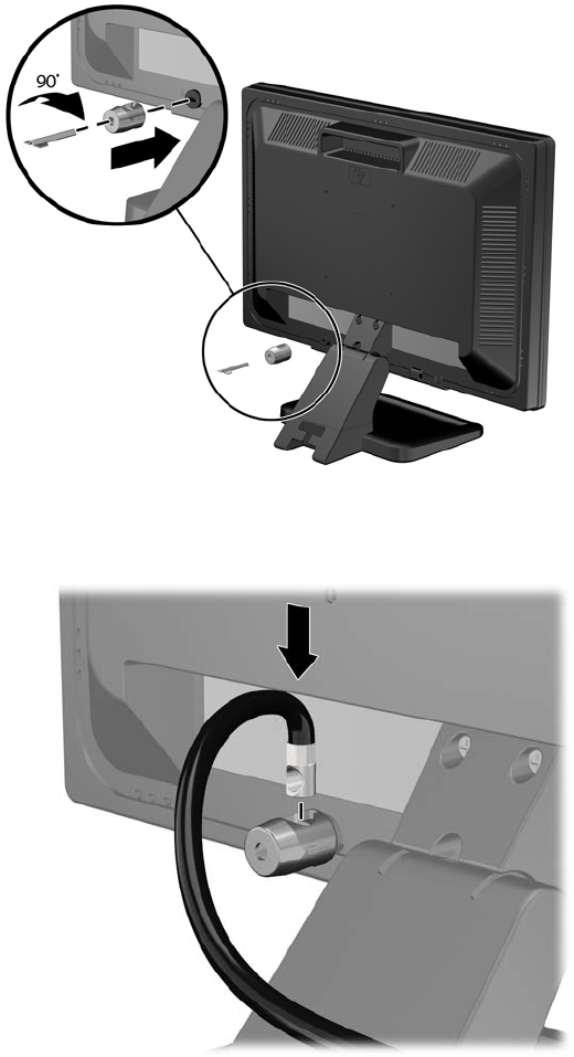 2. Вставьте замок с тросиком в гнездо для замка с тросиком на задней панели монитора и