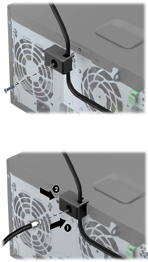 7. Вставьте конец тросика безопасности, на котором находится цилиндр, в блокировочное