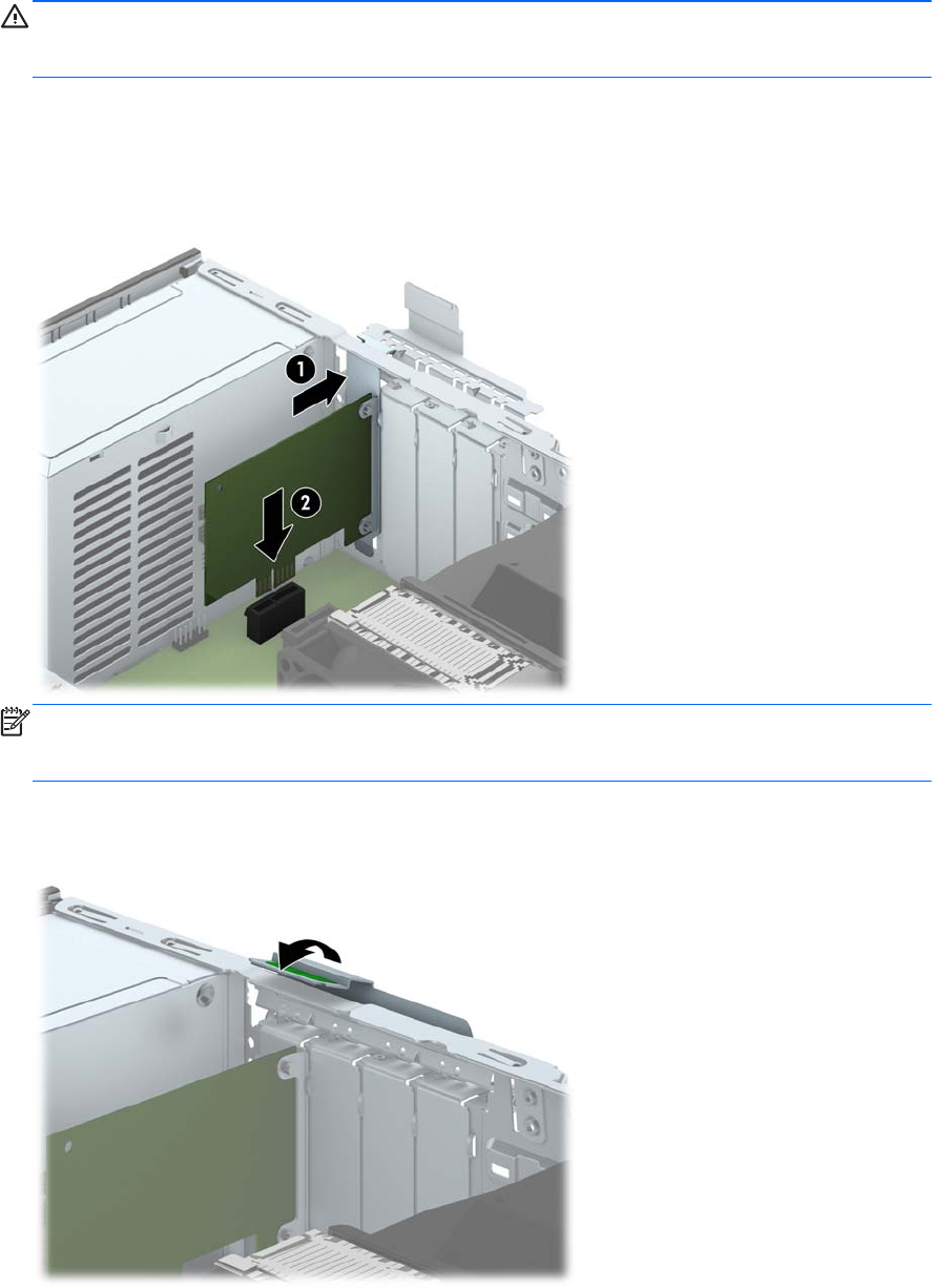 13. Чтобы зафиксировать плату расширения, поверните защелку заглушки, вернув ее на