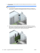 8. Frigör den låshake som håller fast täckplåtarna genom att lyfta i den gröna fliken på haken och