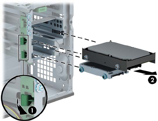 7. Serbest bırakma tırnağını sürücüden dışa doğru çekerek (1) ve sürücüyü yuvadan dışarı