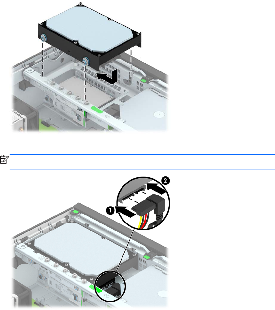 11. Güç kablosunu (1) ve veri kablosunu (2) sabit sürücünün arkasına bağlayın.