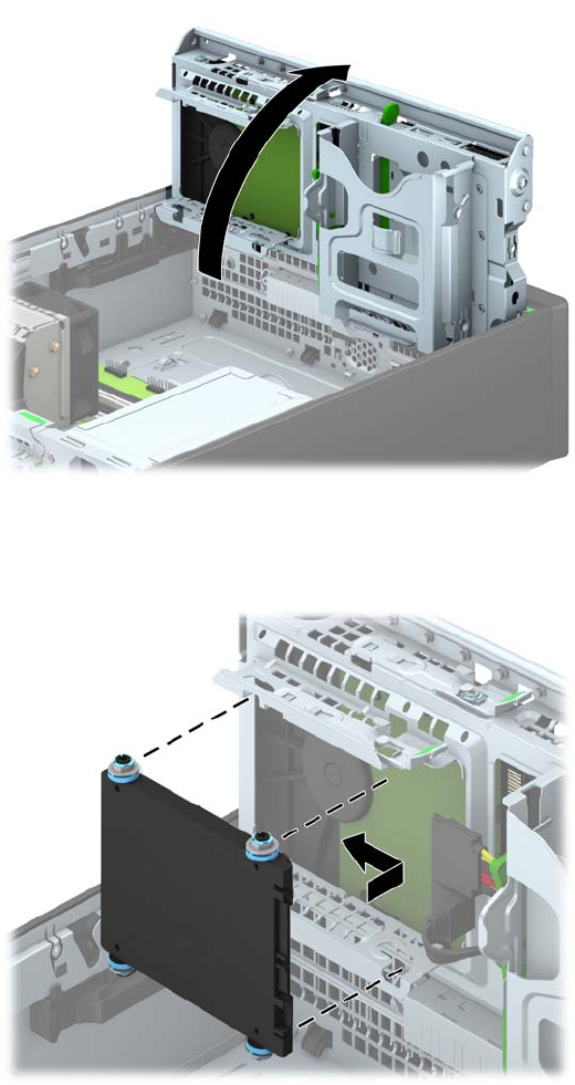 9. Sürücüdeki kılavuz vidalarını, sürücü yuvasının kenarlarındaki J yuvalarıyla aynı hizaya getirin.