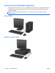 Wechseln von der Desktop- zur Turmkonfiguration Der Small Form Factor-PC kann mit einem optionalen Tower-Standfuß, der bei HP erhältlich ist, als Tower-System verwendet werden. 1. Entfernen/deaktivieren Sie alle Sicherheitsvorrichtungen, die das Öffnen des Computers verhindern. 2. Entnehmen Sie alle Wechselmedien wie CDs oder USB-Flash-Laufwerke aus dem Computer. 3. Fahren Sie das Betriebssystem ordnungsgemäß herunter, und schalten Sie den Computer und eventuell vorhandene Peripheriegeräte aus. 4.