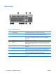 Dijelovi na stražnjoj strani Tablica 1-2 Dijelovi na stražnjoj strani 1 Priključnica napojnog kabela 7 Paralelna priključnica 2 Priključnica za PS/2 miša (zelena) 8 Priključnica za monitor (plava) 3 Priključnica za tipkovnicu PS/2 (ljubičasta) 9 Priključnica za izlaz zvuka za audio uređaje s napajanjem (zelena) 4 Univerzalna serijska sabirnica (USB) (6) 10 Priključnica za ulaz zvuka (plava) 5 Serijska priključnica 11 Dodatna priključnica na monitoru za Digital Video Interface (DVI-D) (Di