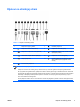 Dijelovi s prednje strane Položaj diskova može se razlikovati među modelima. Tablica 1-1 Dijelovi s prednje strane 1 Optički pogon 5 žaruljica napajanja 2 Priključnica za mikrofon 6 Svjetlosni pokazivač aktivnosti tvrdog diska 3 Priključnica za slušalice 7 Gumb za napajanje s dva stanja 4 Priključnice univerzalne serijske sabirnice (USB ports) Napomena 2 Optički pogon je CD-ROM, CD-R/RW, DVD-ROM, DVD+R/RW ili CD-RW/DVD kombinirani pogon.
