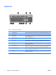 Keyboard Table 1-3 Keyboard Components 1 4 1 Function Keys Perform special functions depending on the software application being used. 2 Editing Keys Include the following: Insert, Home, Page Up, Delete, End, and Page Down. 3 Status Lights Indicate the status of the computer and keyboard settings (Num Lock, Caps Lock, and Scroll Lock). 4 Numeric Keys Work like a calculator keypad. 5 Arrow Keys Used to navigate through a document or Web site.
