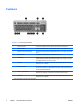 Tastatură Tabelul 1-3 Componentele tastaturii 1 4 1 Taste funcţionale În funcţie de aplicaţia software utilizată, efectuează funcţii speciale. 2 Taste de editare Includ următoarele: Insert, Home, Page Up, Delete, End şi Page Down. 3 Indicatoare luminoase de stare Indică starea computerului şi setările tastaturii (Num Lock, Caps Lock şi Scroll Lock). 4 Taste numerice Funcţionează ca tastatura unui calculator de buzunar.