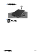 將記憶體模組加入擴充記憶體模組插槽,或更換其中的記憶體模 組 警告! 若要避免觸電或損壞設備的風險,請先拔下電源線並取出所有電池,然後再安裝記憶體模組。 注意: 釋放靜電 (ESD) 會使電子組件受損。在開始執行任何程序之前,您必須先觸碰接地的金屬物 件,以確定釋放身上的靜電。 若要將記憶體模組加入擴充記憶體模組插槽,或更換其中的記憶體模組,請依照下列步驟執行: 1. 儲存您的工作內容。 2. 關閉電腦並闔上顯示器。 如果您不確定電腦是否已關機或在休眠模式,請先按下電源按鈕以啟動電腦, 然後再透過作業系 統來關閉電腦。 3. 中斷所有外接式裝置與電腦的連接。 4. 將電源線從 AC 電源插座拔下。 5. 請將電腦翻轉,以底部朝上放置於平面。 6. 將電池從電腦中取出。 7. 鬆開記憶體模組槽外蓋螺絲 (1)。 8. 打開記憶體模組槽外蓋 (2),並將它從電腦取下。 9. 取出記憶體模組: a.