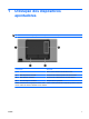 4 Utilização de teclados numéricos O computador possui um teclado numérico integrado e também suporta um teclado numérico externo opcional ou um teclado externo opcional que inclua um teclado numérico. NOTA: PTWW Seu computador pode ter a aparência ligeiramente diferente da ilustração desta seção. Componente Descrição (1) Tecla fn Executa funções do sistema utilizadas com freqüência quando pressionada em combinação com a tecla de função ou com a tecla esc.