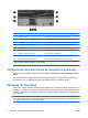 Componente Descrição (1) Bastão apontador Move o cursor e seleciona ou ativa itens na tela. (2) Botão esquerdo do bastão apontador Funciona como o botão esquerdo de um mouse externo. (3) TouchPad Move o cursor e seleciona ou ativa itens na tela. (4) Botão esquerdo do TouchPad Funciona como o botão esquerdo de um mouse externo. (5) Botão central do TouchPad Funciona como o botão central de um mouse externo. (6) Botão direito do TouchPad Funciona como o botão direito de um mouse externo.